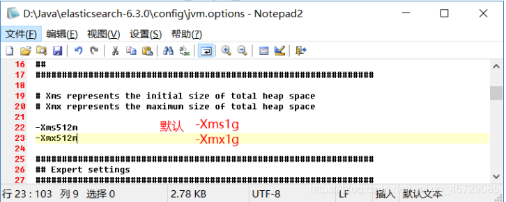 ·Elasticsearch基于Lucene的,而Lucene底层是java实现,学习过程中,建议将jvm参数修改小一些。