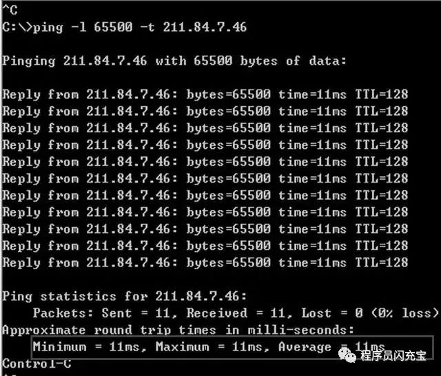 例如:ping -l 65500 -t 211.84.7.46