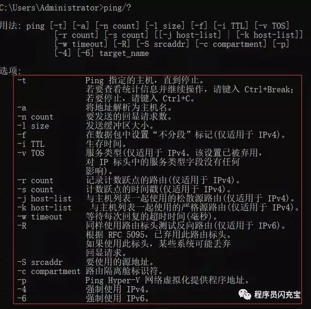 ping命令用的较多的就这6类的,大家有可能在项目中会用到的。