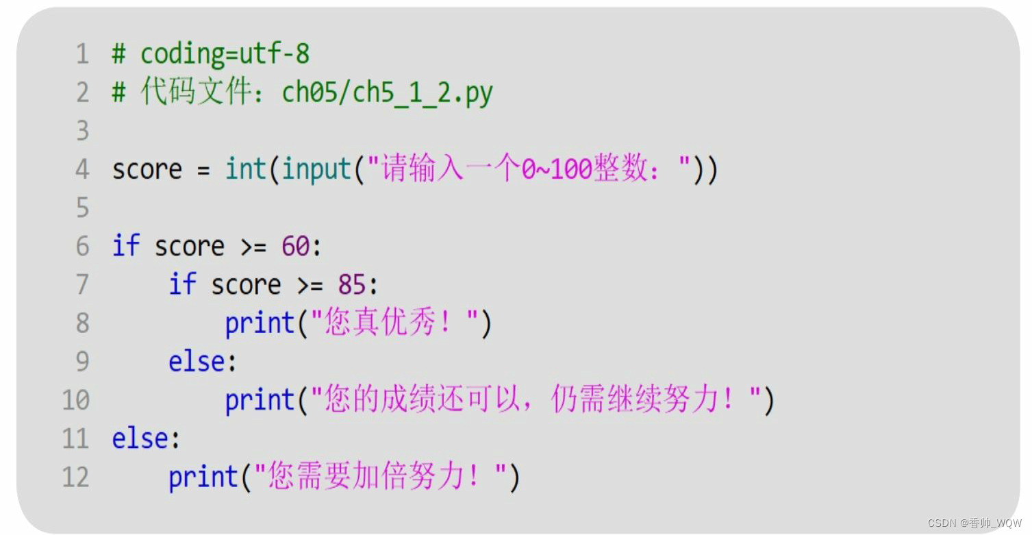 Python的设计理念是简单、刚好够用,所以在Python中没有switch语句,多分支功能是通过if-elif-else实现的。