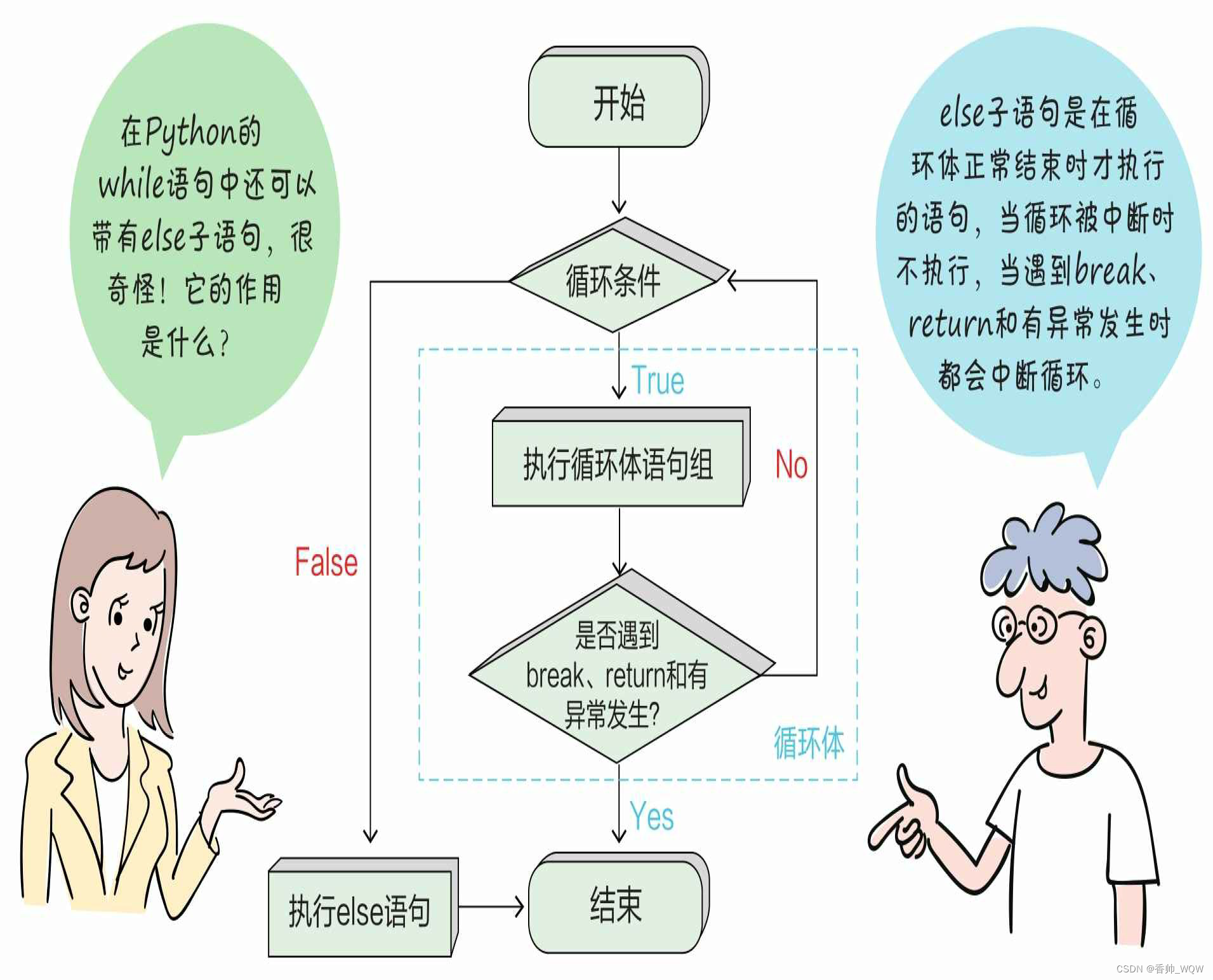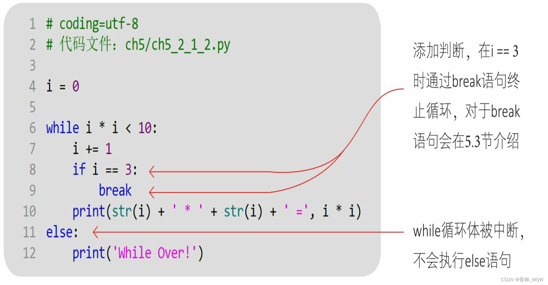 本章的难点是循环语句(while和for)中的else语句。记住:在循环体正常结束时会执行else语句,如果发生中断,则不运行else语句。