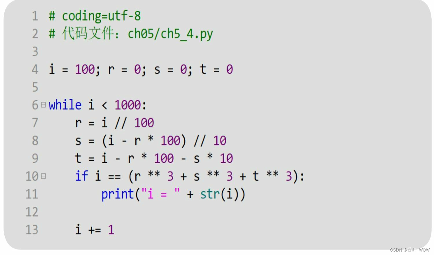 下页给出的只是参考代码,你可以自由发挥。计算出的水仙花数有4个:153、370、371和407。