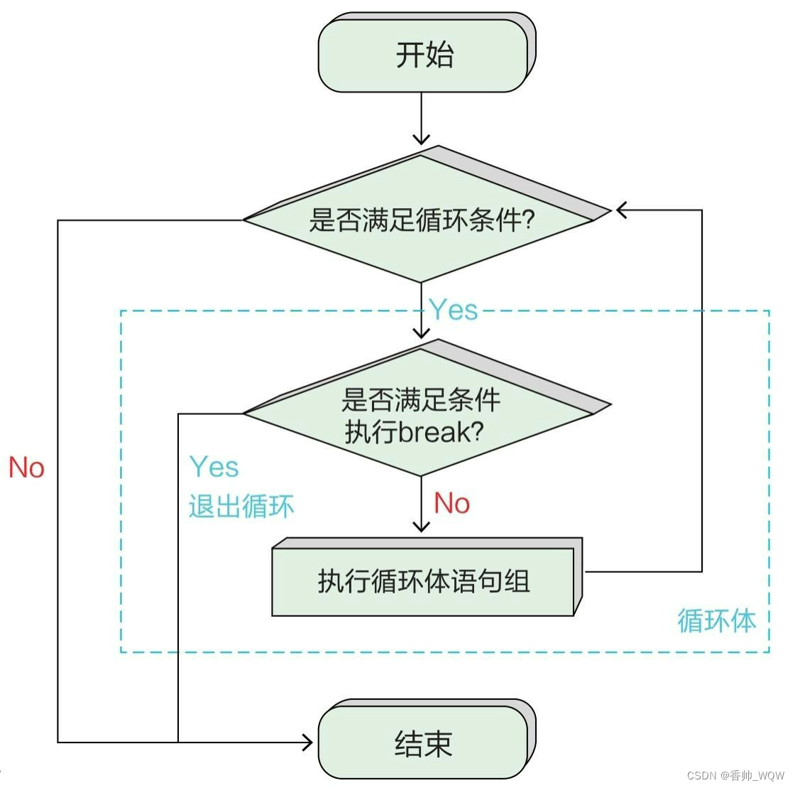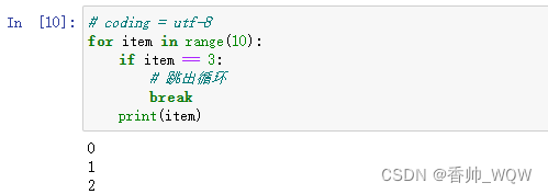 break语句用于强行退出循环体,不再执行循环体中剩余的语句。