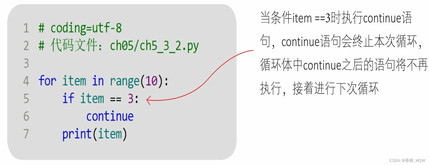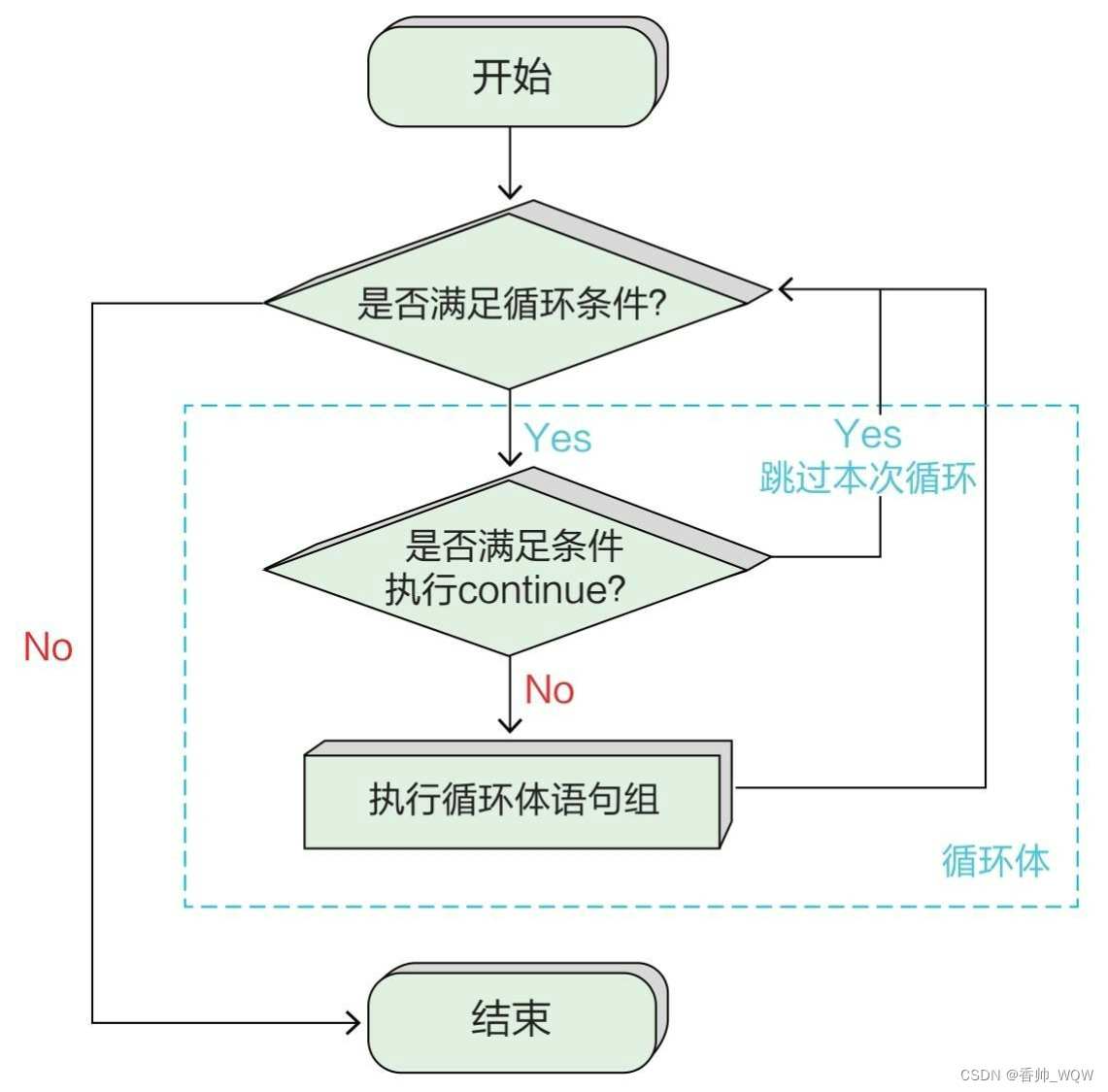 continue语句用于结束本次循环,跳过循环体中尚未执行的语句,接着进行终止条件的判断,以决定是否继续循环。