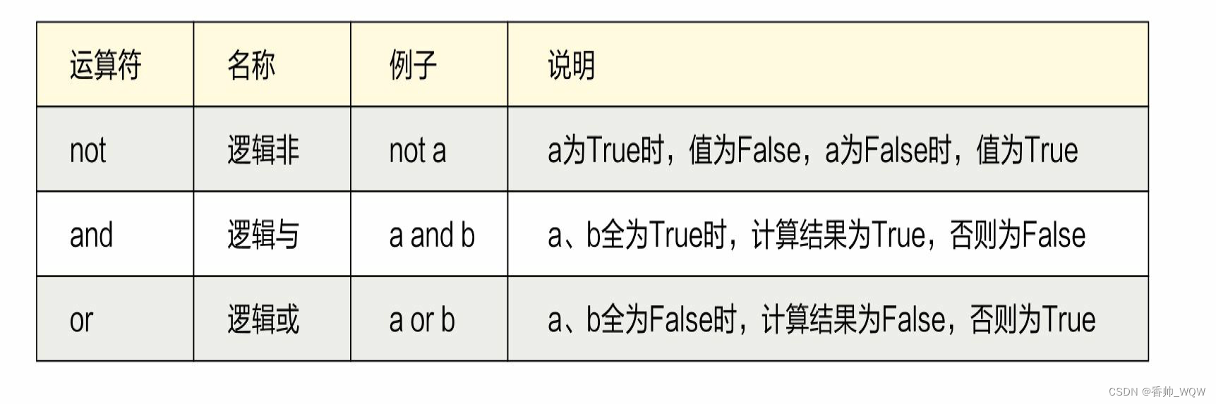 逻辑运算符用于对布尔型变量进行运算,其结果也是布尔型。