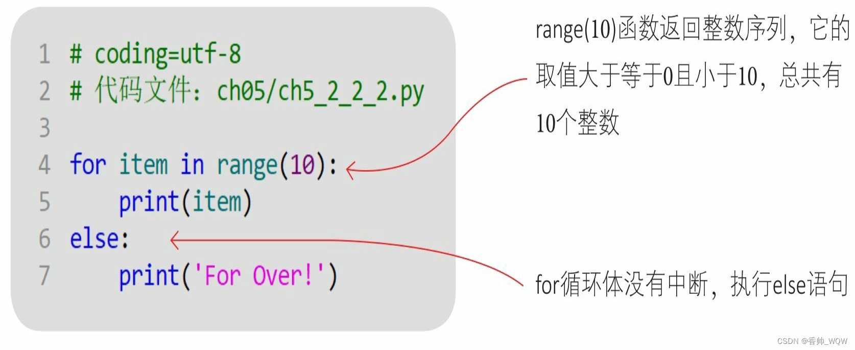 基于简单的设计理念,在Python中只有一种for语句,即for-in语句,它可以遍历任意可迭代对象中的元素。