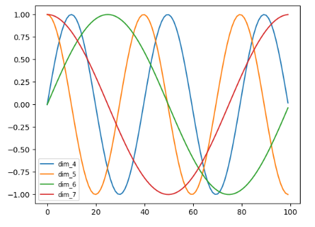 正弦波和余弦波的值域范围都是1到-1这又很好的控制了嵌入数值的大小, 有助于梯度的快速计算