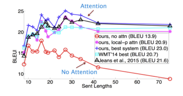 #1.rnn和lstm文本长度20~30之间效果下降显著 #2.transformer超过句子长度40以后也能保持较好效果