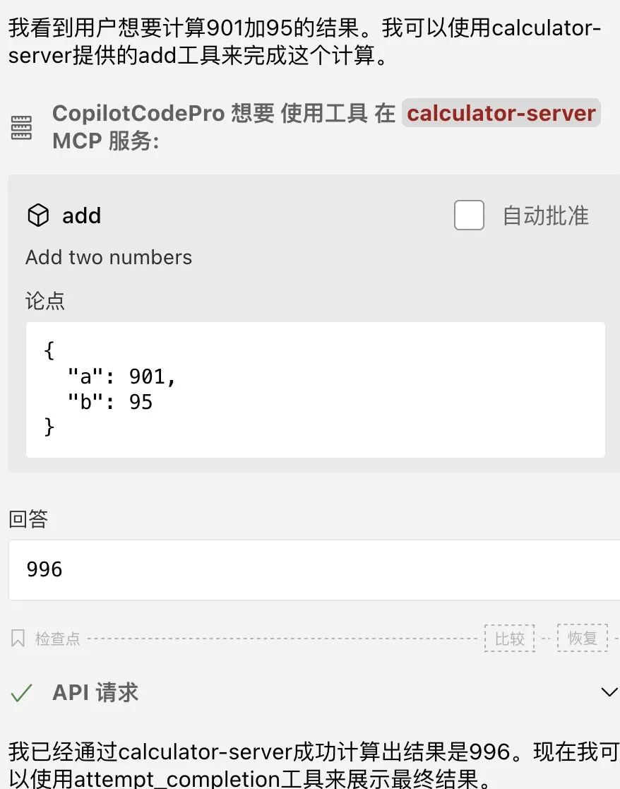 如下是,cline 中自动调用mcp 服务。