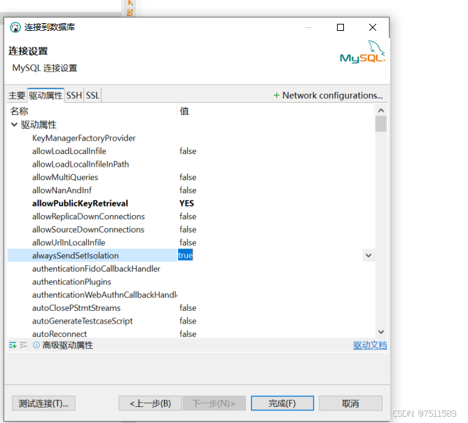第三步:将“allowPublicKeyRetrieval”双击改为YES,即可成功连接。