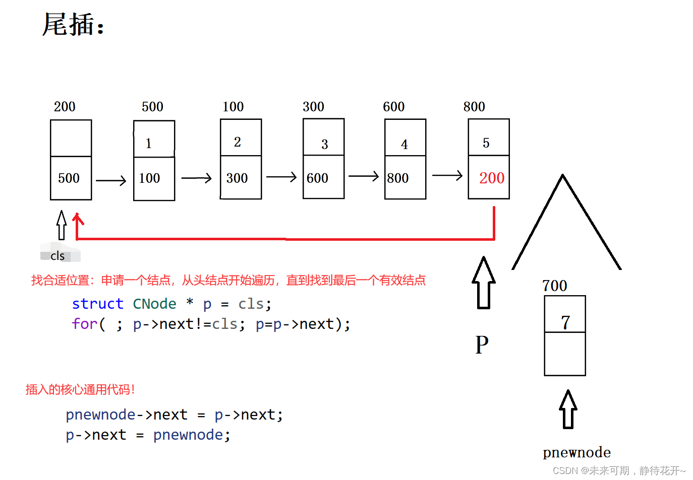 for( ; p->next!=cls; p=p->next); //退出循环时,此时p便指向最后一个有效结点(尾巴结点)