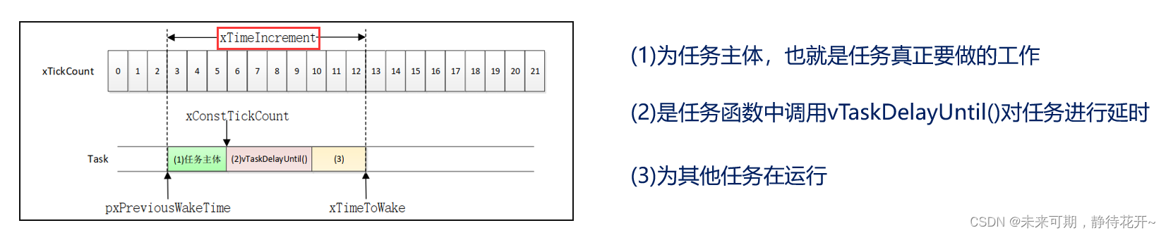 xTaskGetTickCount()获取。xTimeIncrement: 任务之间的时间间隔,即任务周期,单位是 tick 数。