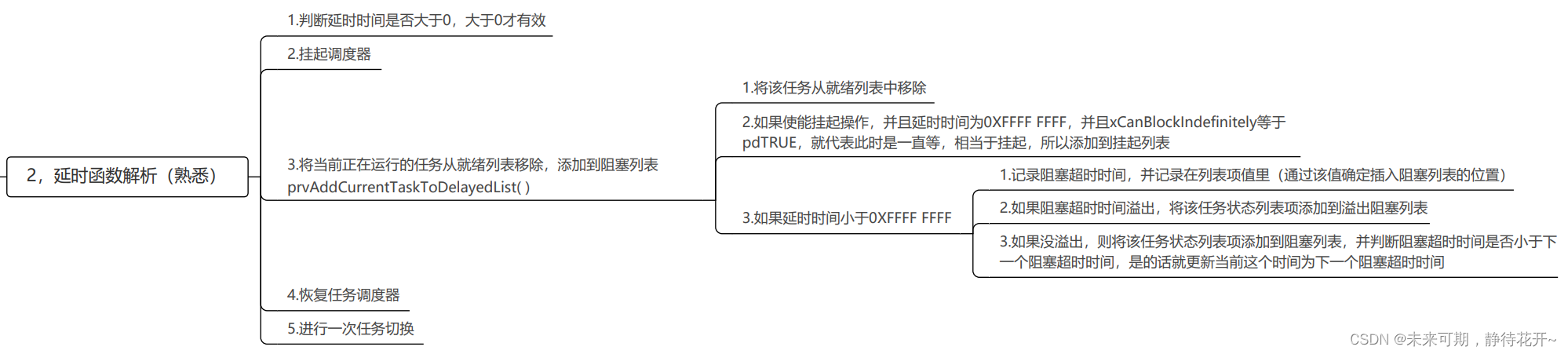 如果 xTicksToDelay 为 0,函数直接返回,因为不需要延迟。