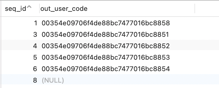 ROW_NUMBER() OVER (PARTITION BY out_user_code ORDER BY seq_id) num