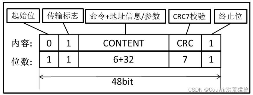 SD命令固定格式为48bit,都是通过CMD线连续传输的。