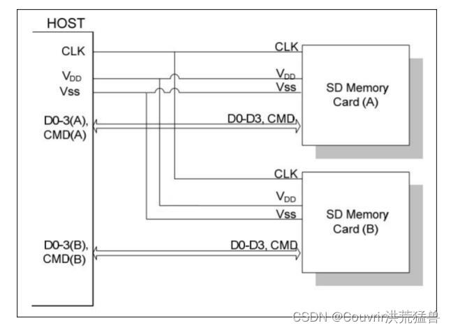虽然可以共用总线,但不推荐多卡槽共用总线信号,要求一个单独总线应该连接一个单独的SD卡。
