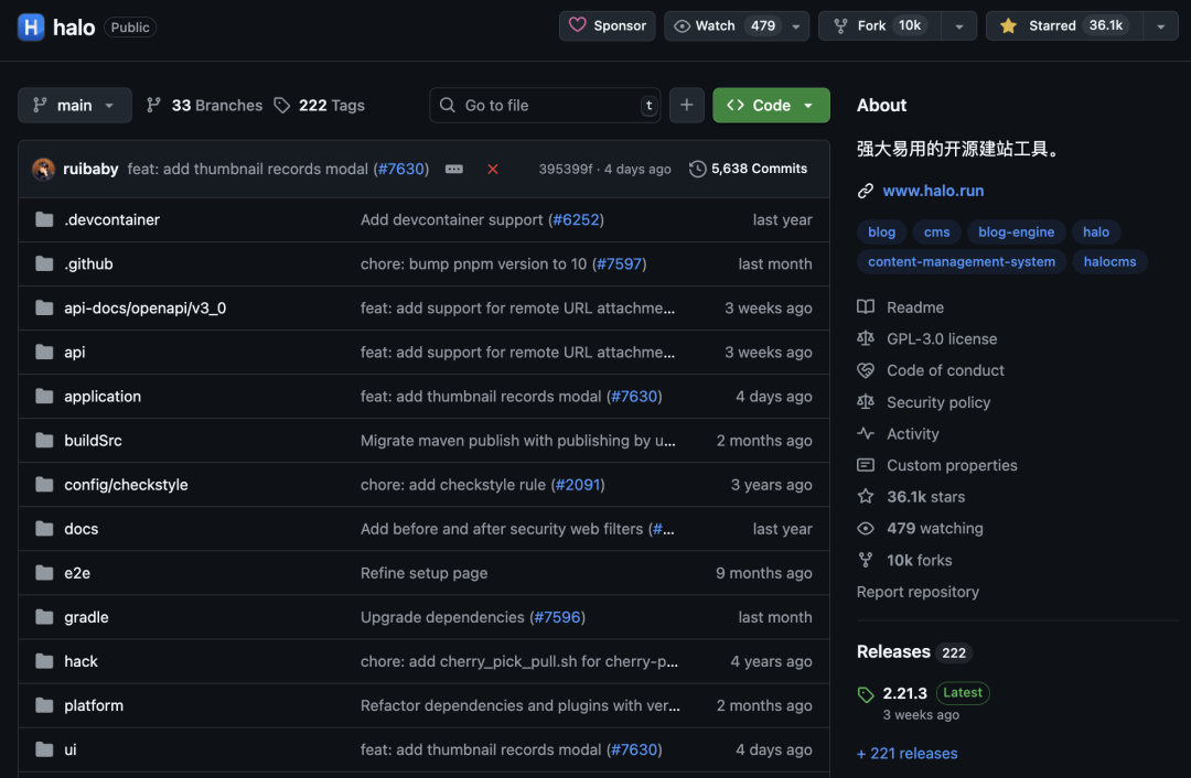 今天介绍一个叫 Halo 的国产开源建站工具,目前已经在 GitHub 上获得了 36K+ 的 Star 了。