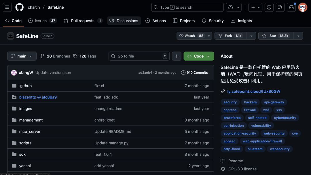 开源地址:https://github.com/chaitin/SafeLine长按扫描二维码