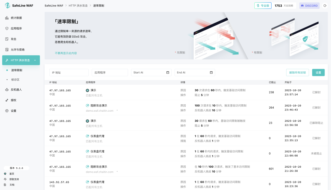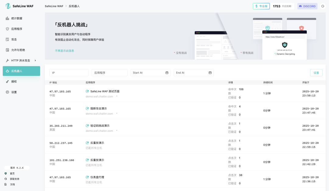现在,你可以直接登录下面这个部署好的面板去瞧瞧,在这里你就能直观的看到受保护网站的防护情况。