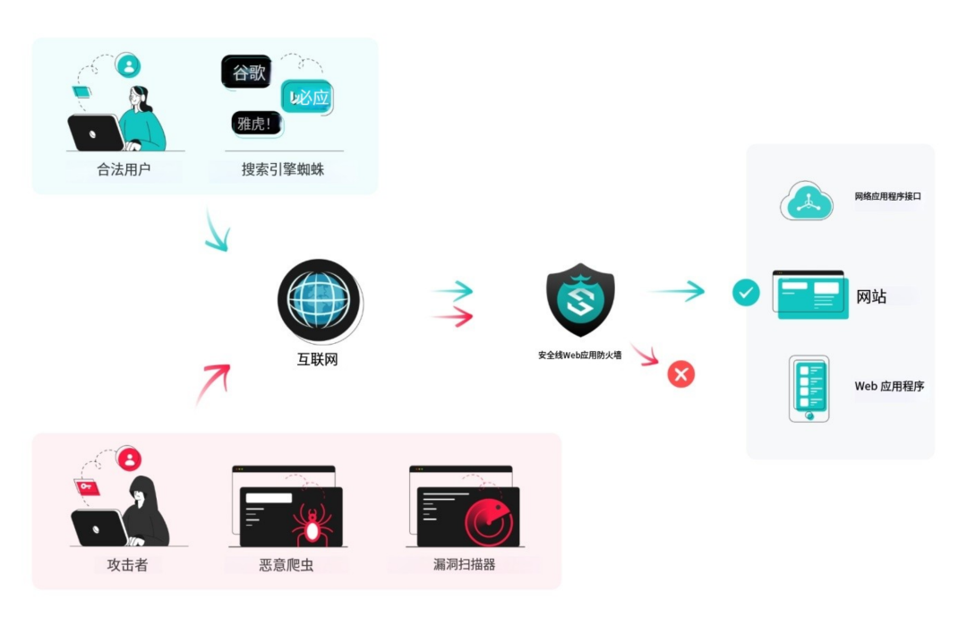 当你在 Web 应用前面部署 SafeLine 后,它就像一个反向代理,所有用户请求都需要先经过这个防火墙,然后才会到达你的服务器。