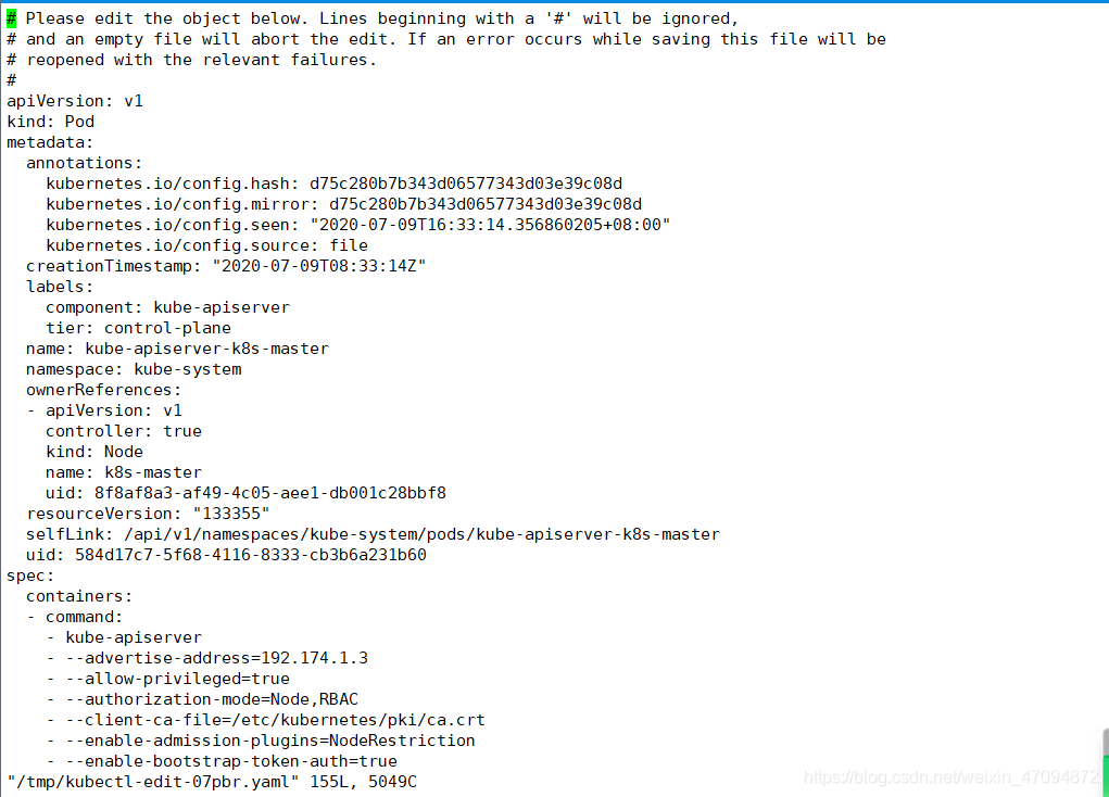 kubectl edit --namespace=kube-system pod kube-apiserver-k8s-master