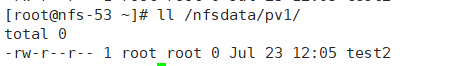 在pod中创建的文件 /mydata/pv1,确实已经保存到了NFS服务器目录 /nfsdata/pv1中。