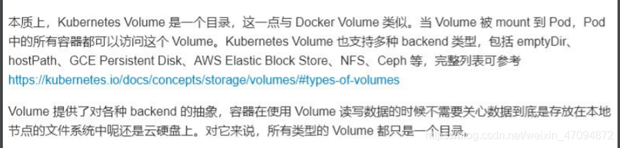 volume的生命期独立于容器,pod中的容器可能被销毁和重建,但volume会被保留。