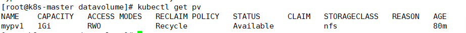 作为准备工作,我们已经在k8s-master节点上搭建了一个NFS服务器,目录为、nfsdata: