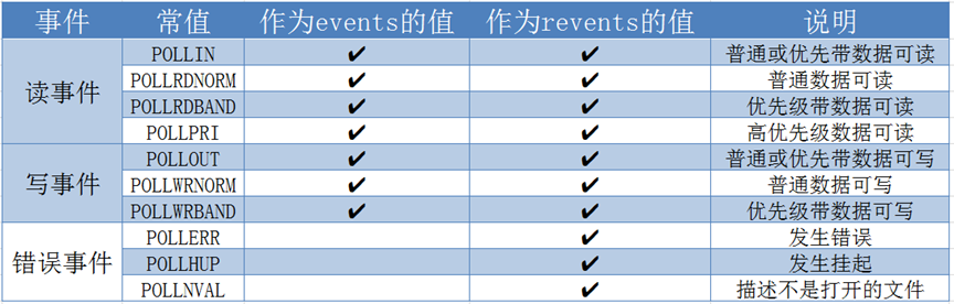- events : 传出参数,保存了发送了变化的文件描述符的信息