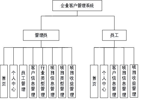 本企业客户管理系统主要包括二大功能模块,即员工功能模块和管理员功能模块。