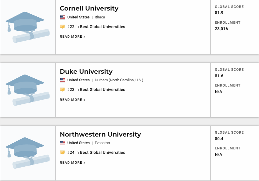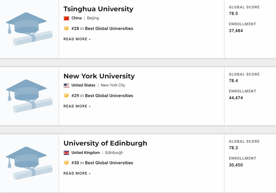 US News 世界大学排名由美国权威的《美国新闻与世界报道》发布,根据大学的学术水平、国际声誉等十项指标得出全球最佳大学排名,以便为全世界的学生在全球范围选择理想的大学提供科学的参考依据。