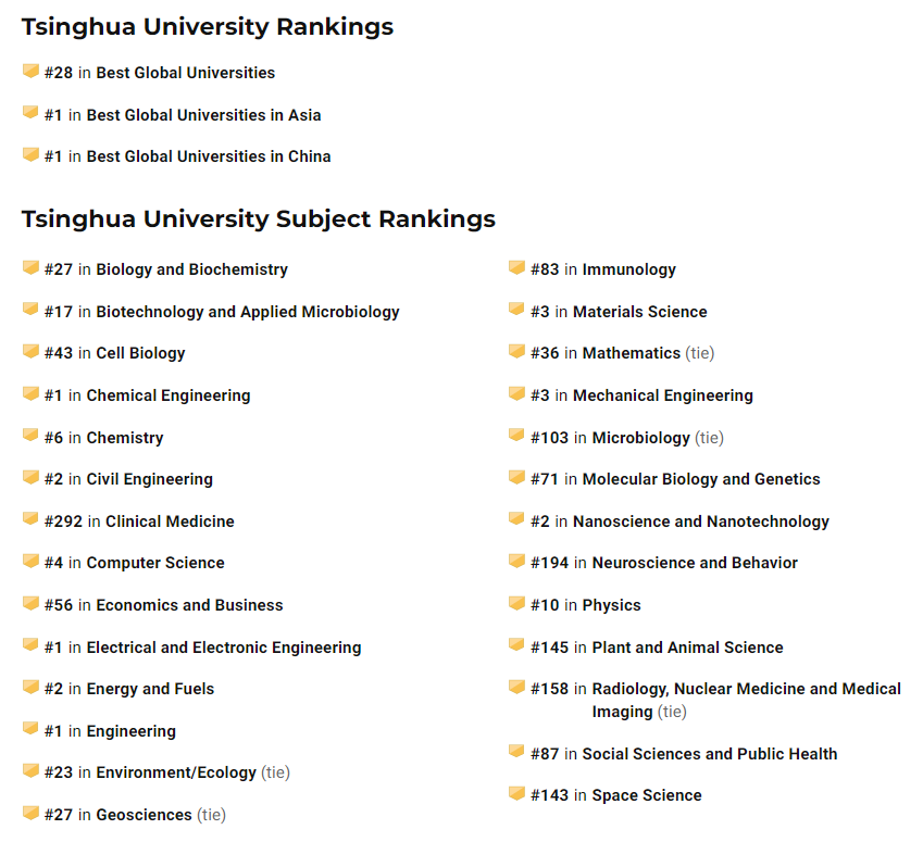 此外,US News 公布了新的世界大学学科排行榜。清华大学的工程学、化学工程、电气与电子工程 3 个学科成功问鼎世界第一,其中化学工程、电气与电子工程学科首次登顶。