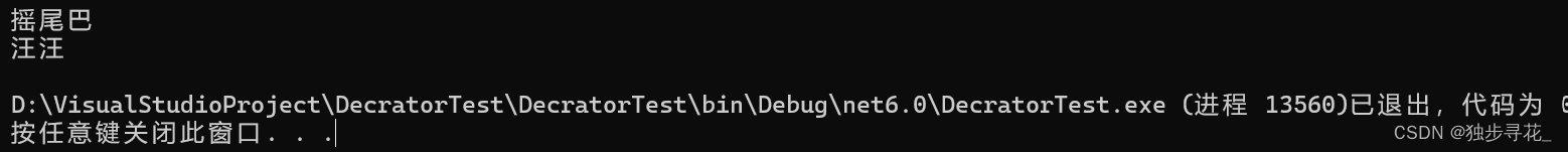 public void WagTail() { Console.WriteLine("摇尾巴"); } //编写装饰方法