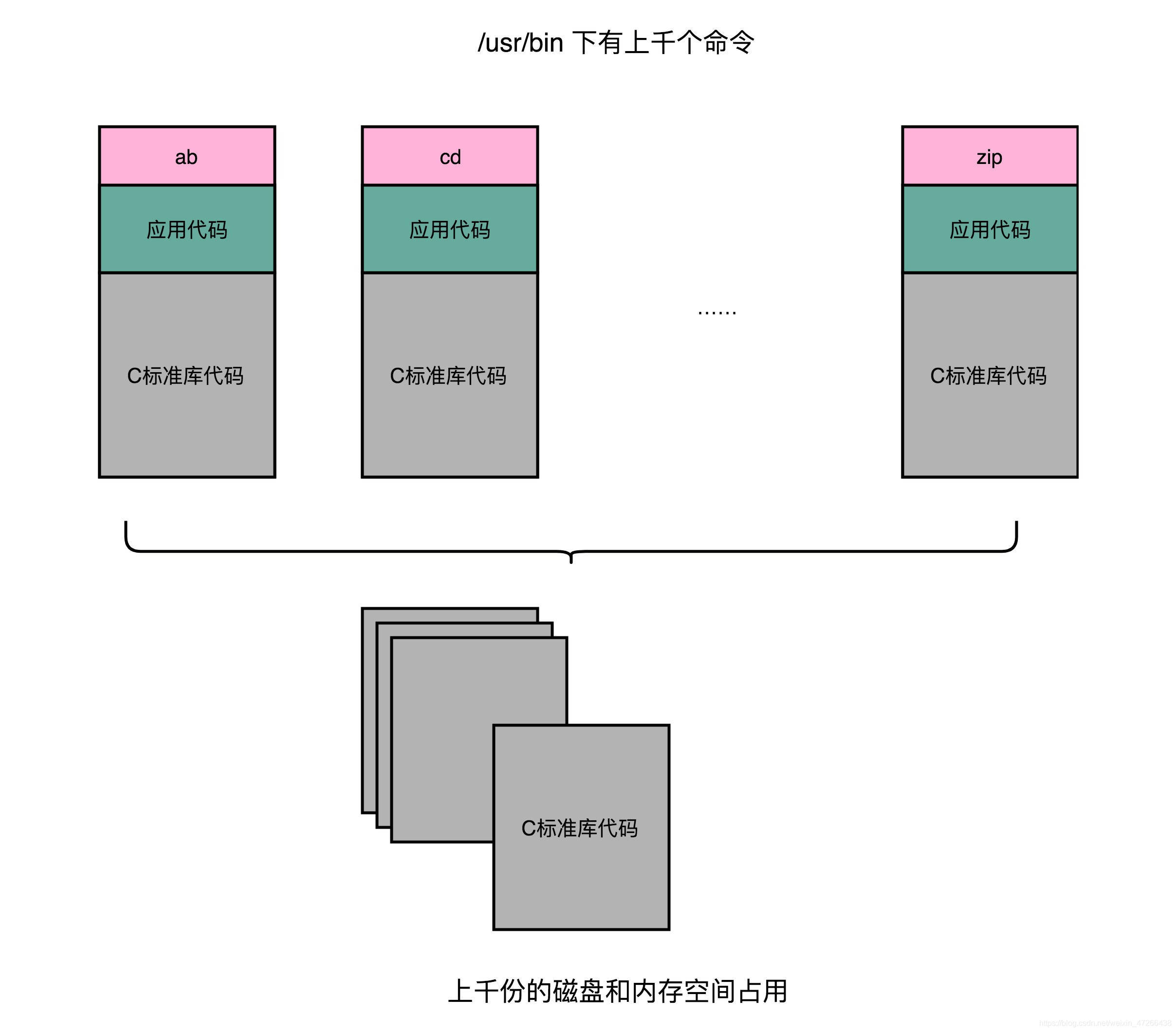 但是,如果我们又很多个程序都要通过装载器装载到内存里面,那里面链接好的功能代码,也都需要再装在一遍,再占一遍内存空间。这就好比,假设每个人都有骑自行车的需要,那我们给每个人都生产一辆自行车带在身边,固然大家都有自行车用了,但是马路上肯定会特别拥挤。