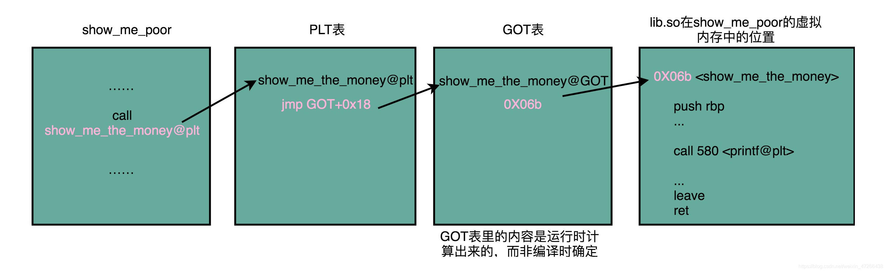 所以说,GOT就像是一个程序与共享库之间的联络员,就像是共享单车的二维码。程序通过扫描二维码来链接共享库中的代码文件。