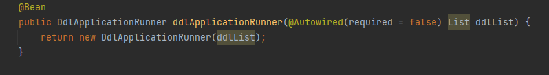 public DdlApplicationRunner ddlApplicationRunner(@Autowired(required = false) List ddlList) {