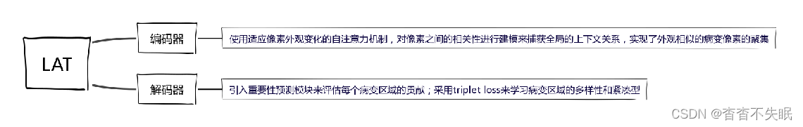 糖尿病性视网膜病变Diabetic retinopathy (DR)是导致人群失明的主要原因,自动DR诊断包括DR分级和病变发现,现有的大多数方法都将DR分级和病变发现视为两个独立的任务,这需要病变注释作为学习指导,并限制了实际部署.论文提出了基于病变感知的transformer(LAT),用于通过包括基于像素关系的编码器和基于病变滤波器的解码器的编码器-解码器结构,在统一的深度模型中共同进行DR分级和病变发现。