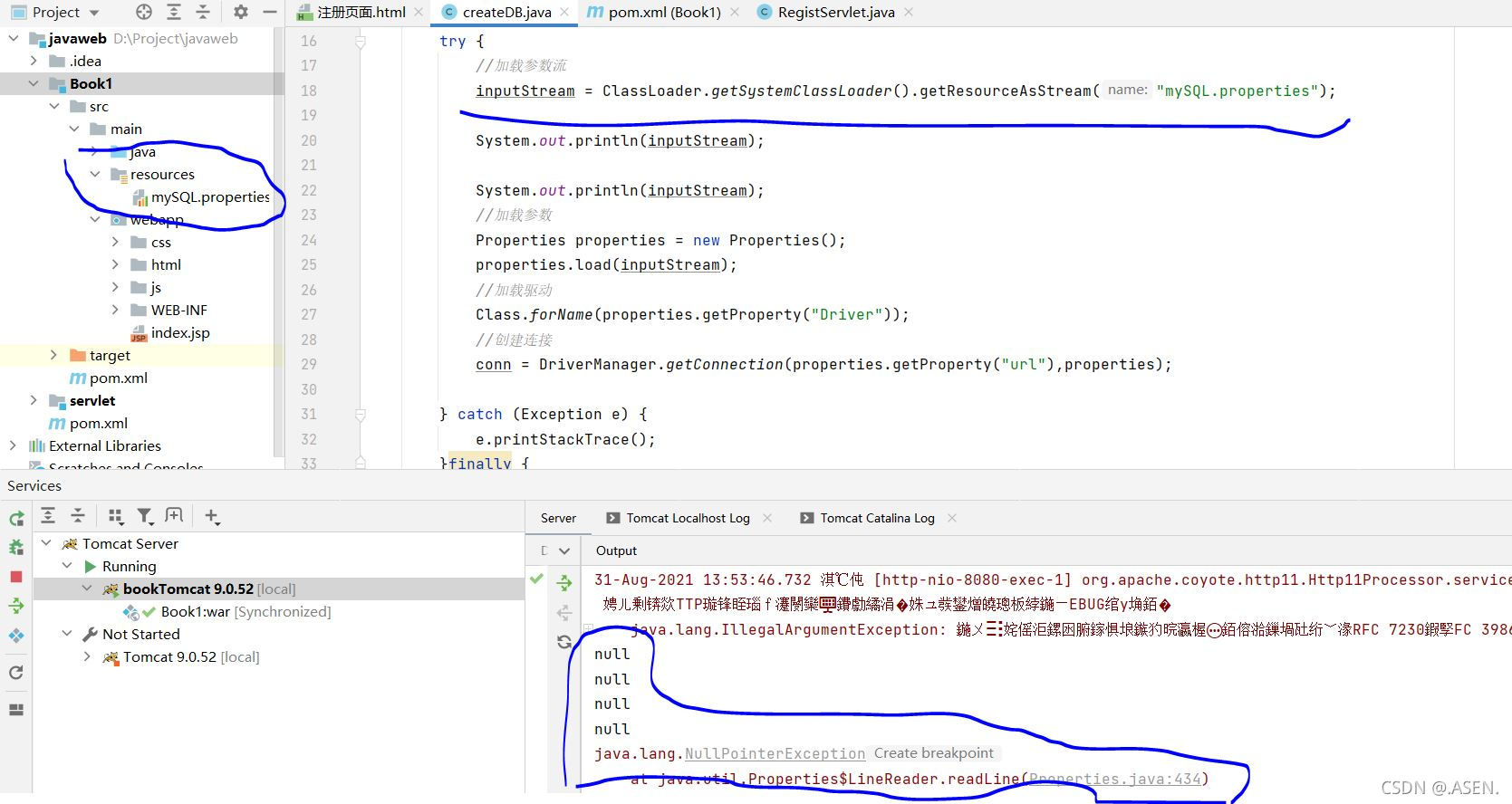 当使用系统类加载器加载配置文件时报空指针异常,当时没考虑到加载器问题,一味的修改路径,绝对路径和相对路径都试过后发现都不行。