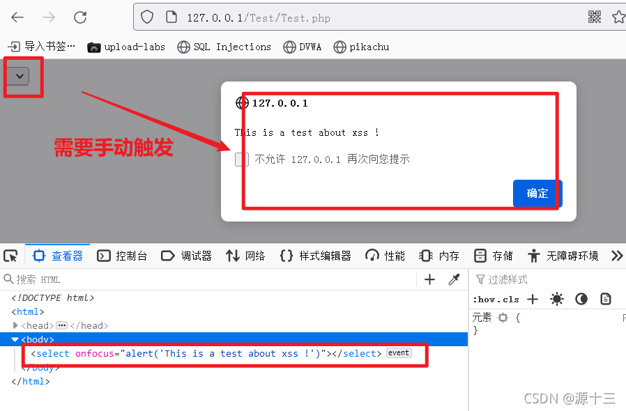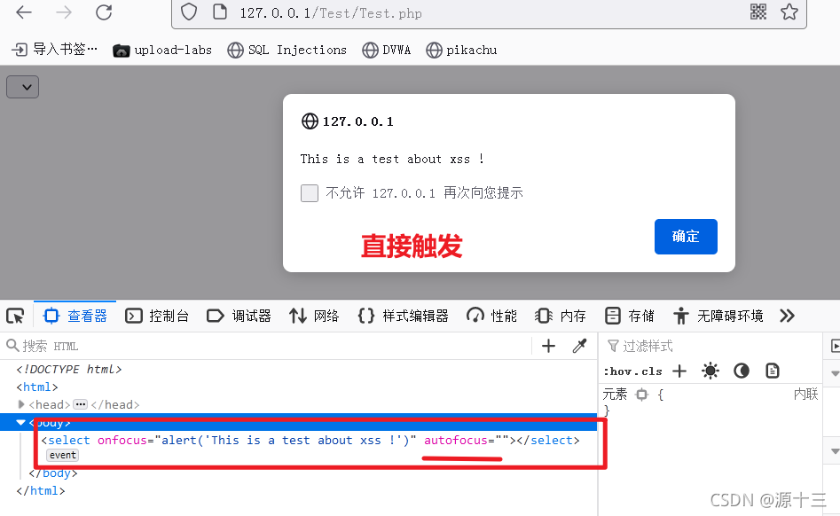 //通过 autofocus 属性执行本身的focus事件,这个向量是使焦点自动跳转到输入元素上,触发焦点事件,无需用户去触发
