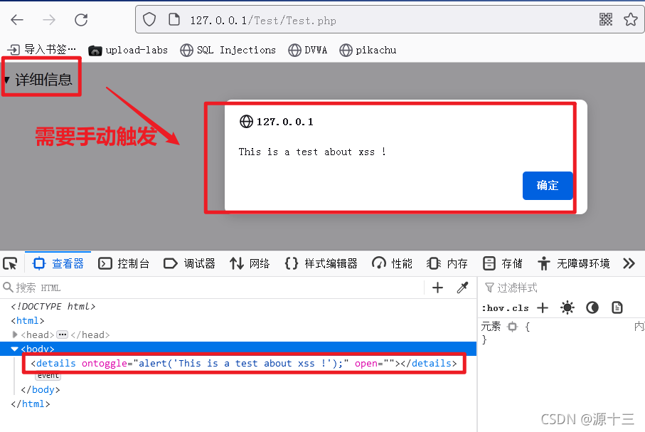 // 使用open属性触发ontoggle事件,无需用户去触发