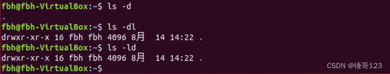 和-l搭配:ls -dl和ls -ld一样都能列出当前目录自身的详细信息