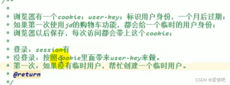 创建一个临时用户即生成一个name为user-key的cookie临时标识,过期时间为一个月,以后每次浏览器进行访问购物车的时候都会携带user-key。user-key 是用来标识和存储临时购物车数据的,处理完后会返回这个user-key