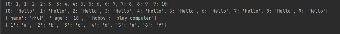 dict1 = {i: i + 1 for i in range(10)} # 快速生成一个字典