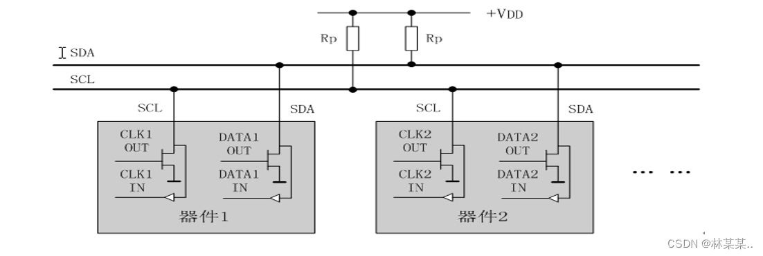 IIC总线有两个上拉电阻,这两个上拉电阻作用在IIC总线为空闲状态时保持高电平。