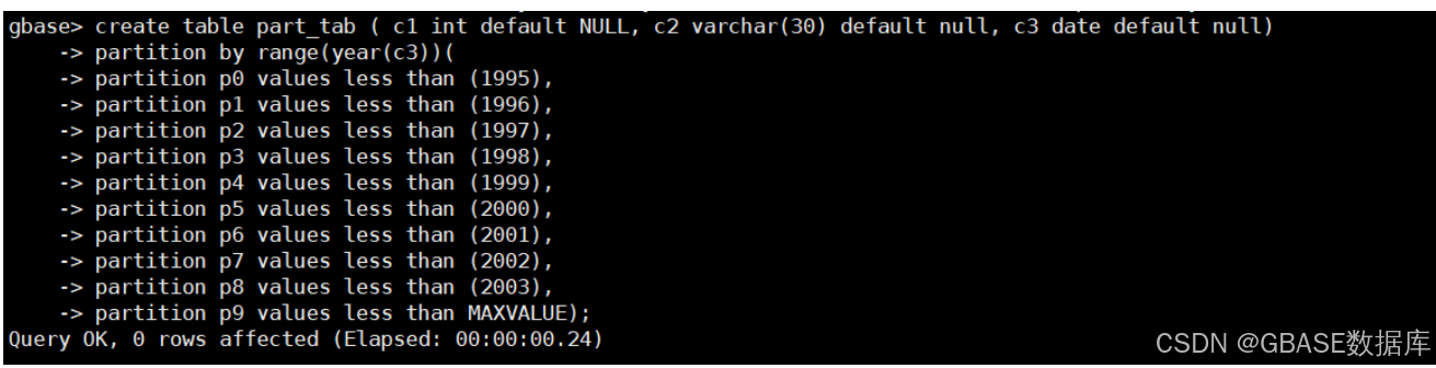 create table part_tab ( c1 int default NULL, c2 varchar(30) default null, c3 date default null)