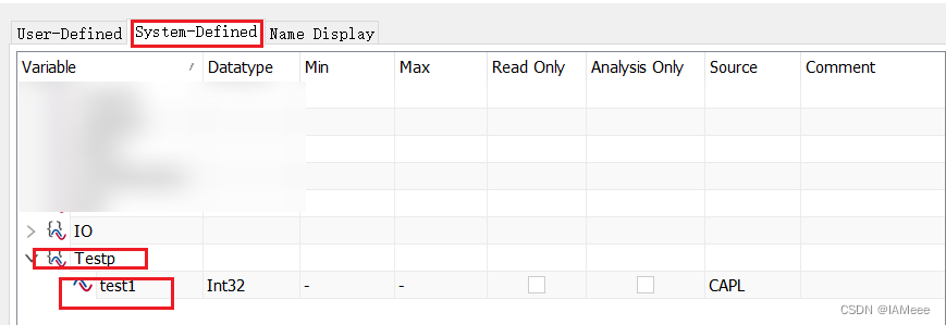 在使用Panel控制脚本时,系统变量是不可或缺的存在,一般都是直接在下图中进行创建,创建完成之后就会在User-Defined中出现,但除此之外也可以使用CAPL函数创建系统变量来使用。
