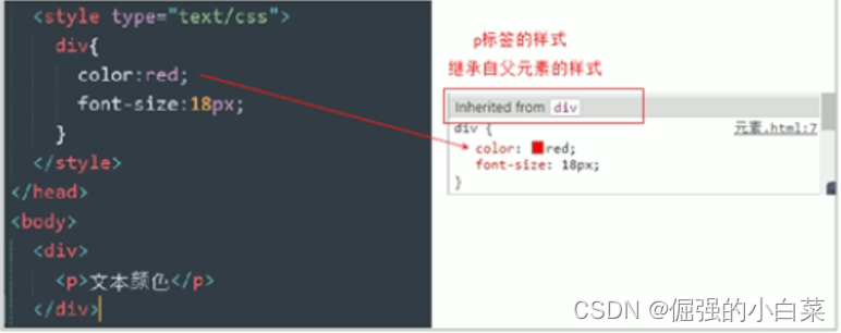 - 子元素可以继承父元素的样式(text- 、font- 、line- 这些元素开头的可以继承,以及color属性)