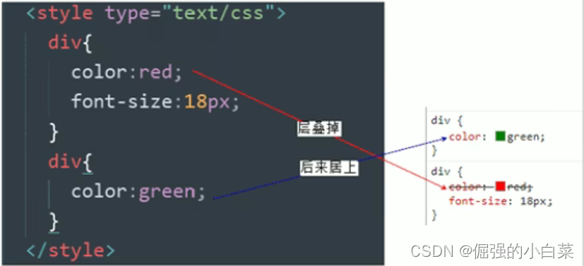 相同选择器给设置相同的样式,此时一个样式就会覆盖(层叠)另一个冲突的样式。层叠性主要解决样式冲突的问题。