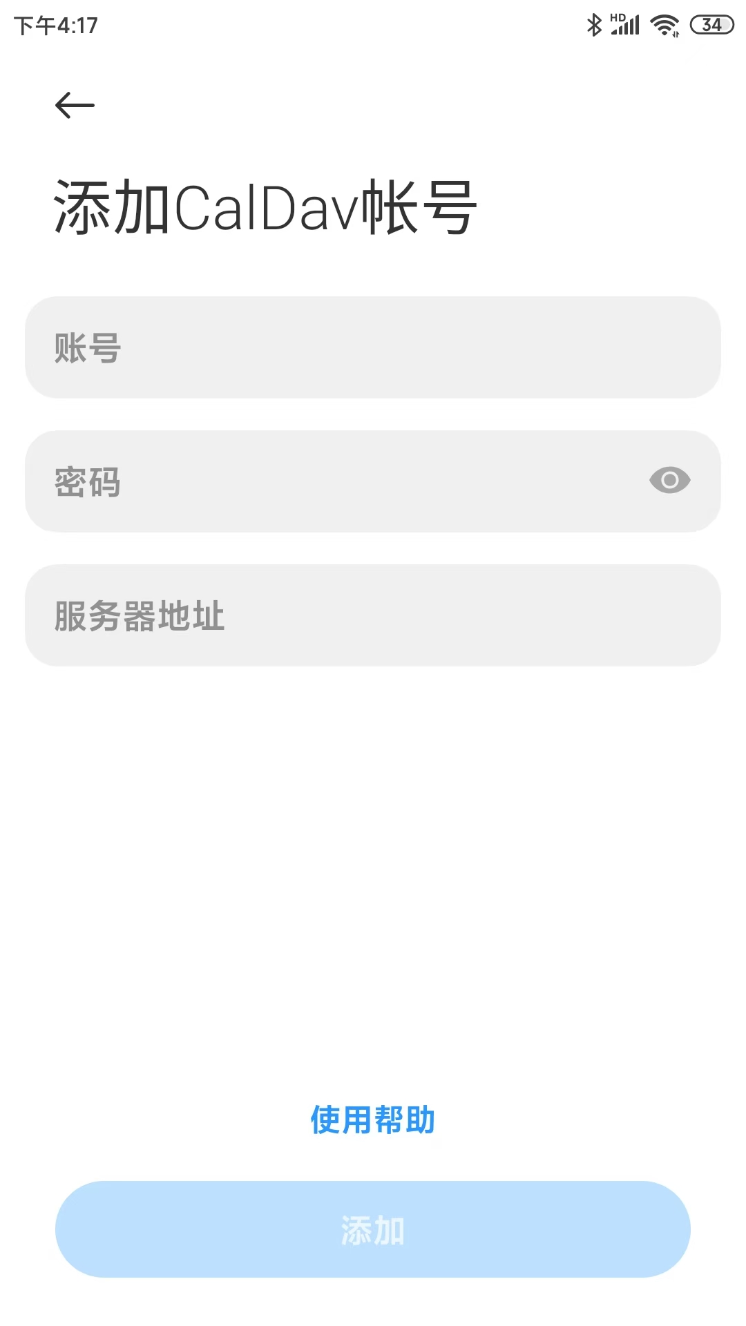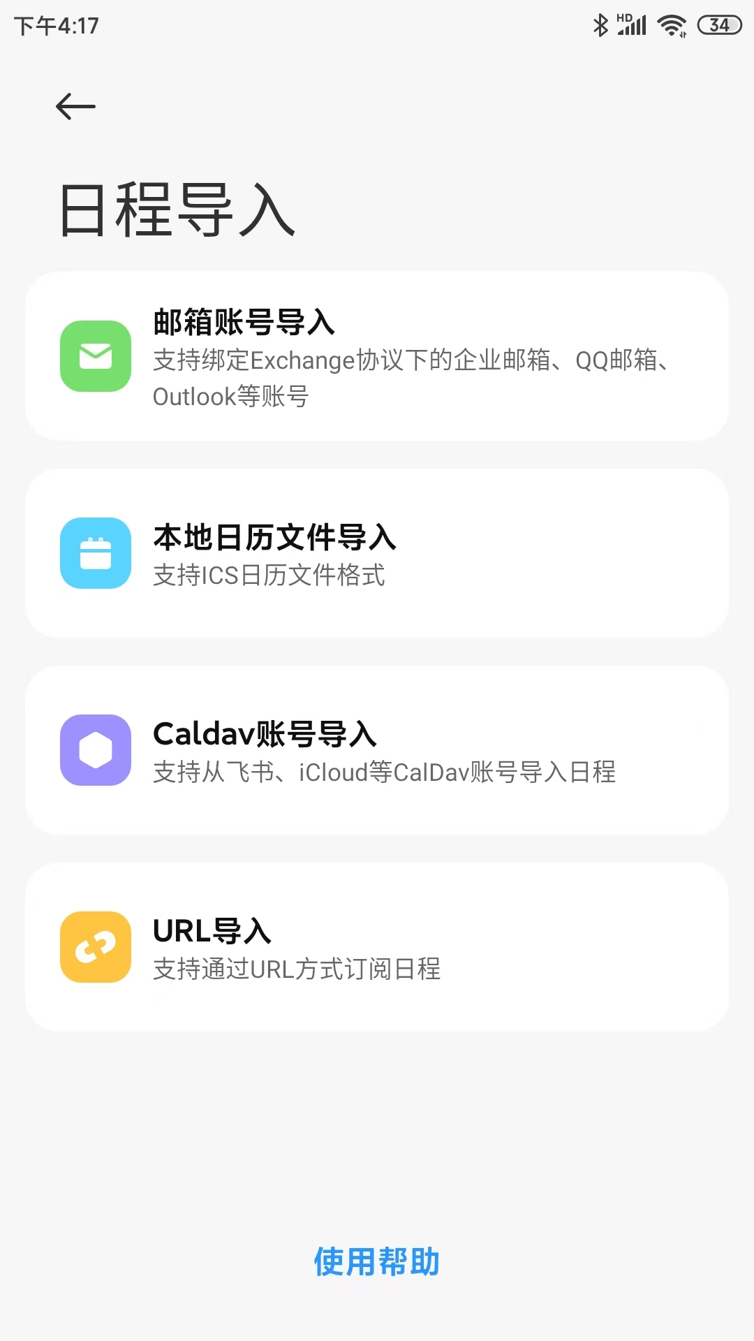 日历 - 设置 - 账户管理 - 日程导入 - 添加CalDAV账户 - 设置账户并提交