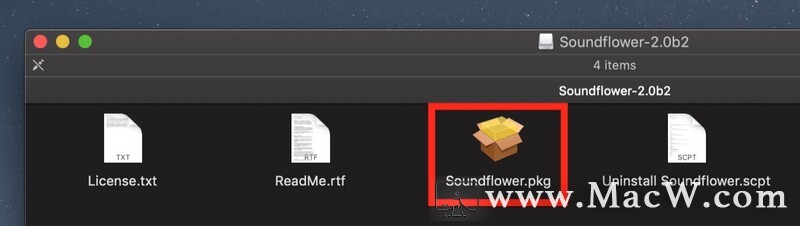 3.按住Ctrl键,并在Soundflower.pkg文件上单击鼠标左键,然后从上下文菜单中选择“打开”。